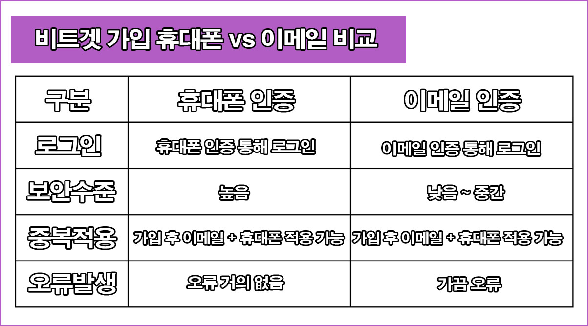 비트겟 가입 휴대폰과 이메일 가입 비교