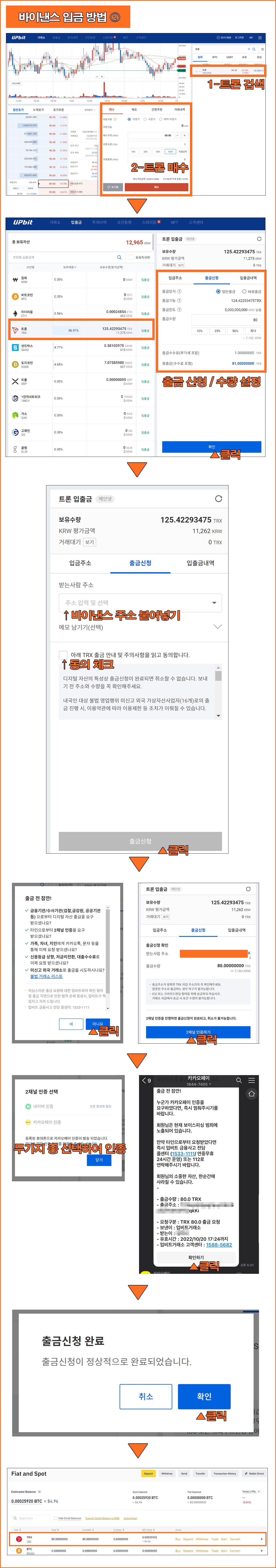 국내거래소에서 코인 매수 → 바이낸스로 코인 출금 → 바이낸스로 코인 입금 완료