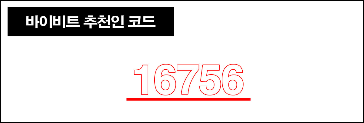 바이비트 레퍼럴 코드(추천인 코드)는 위와 같으며 수수료 할인과 최대 증정금을 받을 수 있다. 직접 레퍼럴 코드를 입력하거나 아래 가입하기 링크를 클릭하여 자동 레퍼럴 코드 적용으로도 계정 등록이 가능하다.