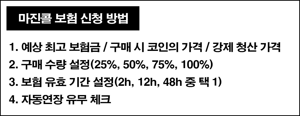 1. 최소 구매 금액 = 500USD (포지션 500불 이하는 보험 구매 불가)