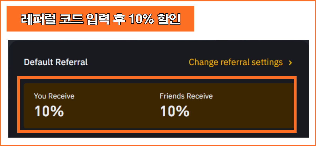 초보코인가이드 공식 레퍼럴 코드 10% 할인을 받을 수 있도록 최초가입 시 등록 하면 된다.