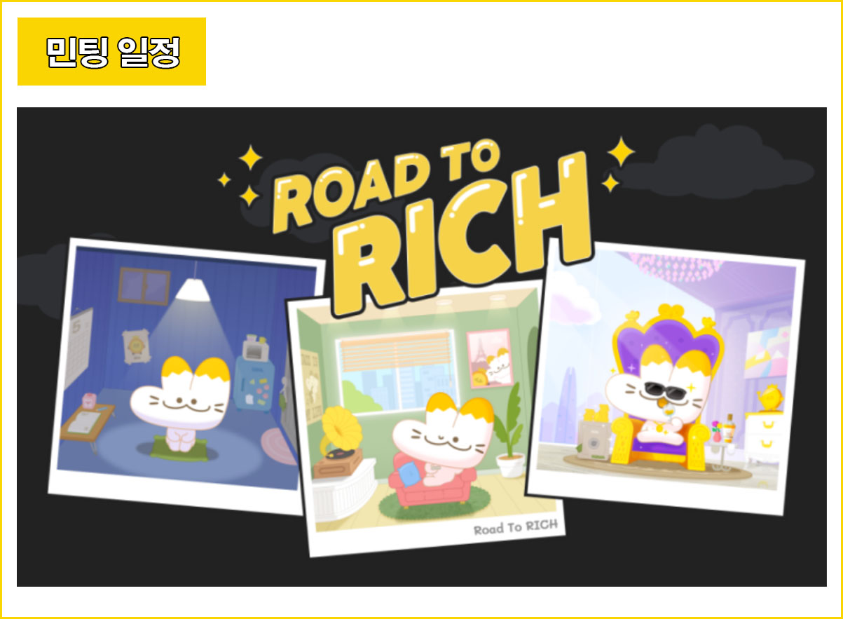 로드 투 리치를 통해 사용자들은 웹3 서비스를 경험하고 즐길 수 있을 것이고 이를 통해 OK캐쉬백이 NFT의 대중화를 선도할 수 있는 기회가 될 것으로 긍정적으로 바라보는 시각이다. 앞으로 SK그룹 관계사와의 연계는 물론 다수의 파트너사와의 협업으로 다채롭고 풍성한 서비스를 제공할 계획이라고 하니 관심이 있다면 발행 예정일을 참고하시기를 바란다.