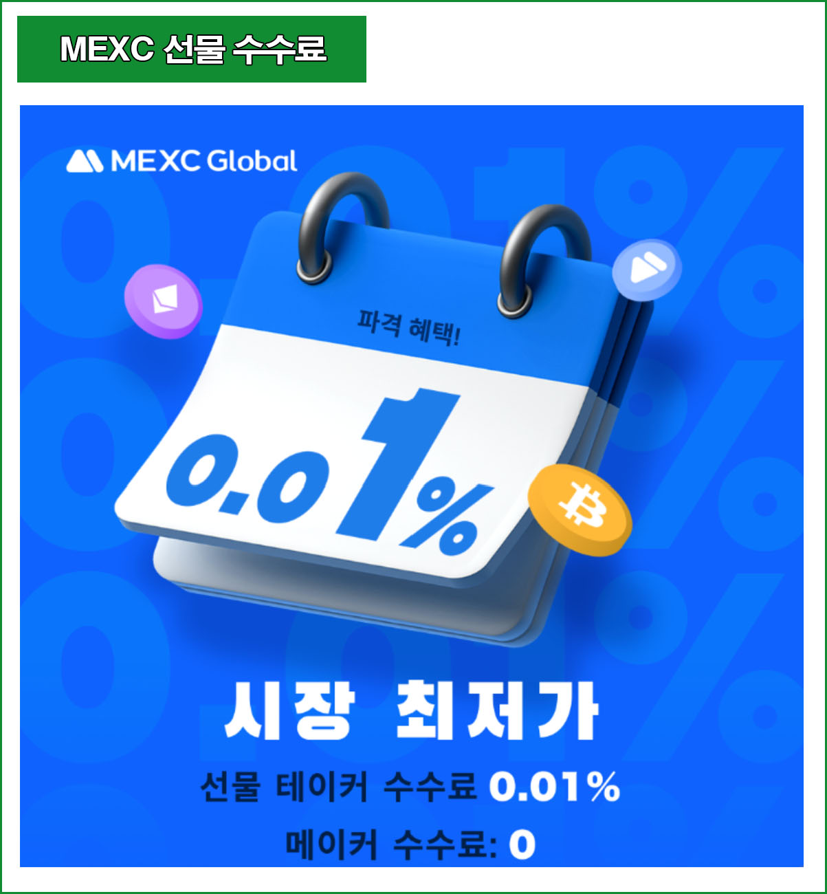 MEXC 거래소는 5주년을 기념하여 선물 테이커 기준 0.01%, 메이커 기준 0%로 진행한다고 한다. 즉 지정가 거래는 0%, 시장가 거래는 0.01%이다.