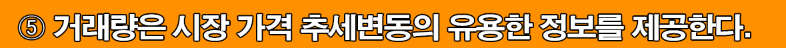 강력한 추세에는 많은 거래량이 동반되어야 하는 의미하고 거래량이 많을수록 해당 움직임은 시장 추세를 반영할 가능성이 있습니다. 반대로 거래량이 적을 경우 시장 추세를 반영하지 못 할수 있습니다.