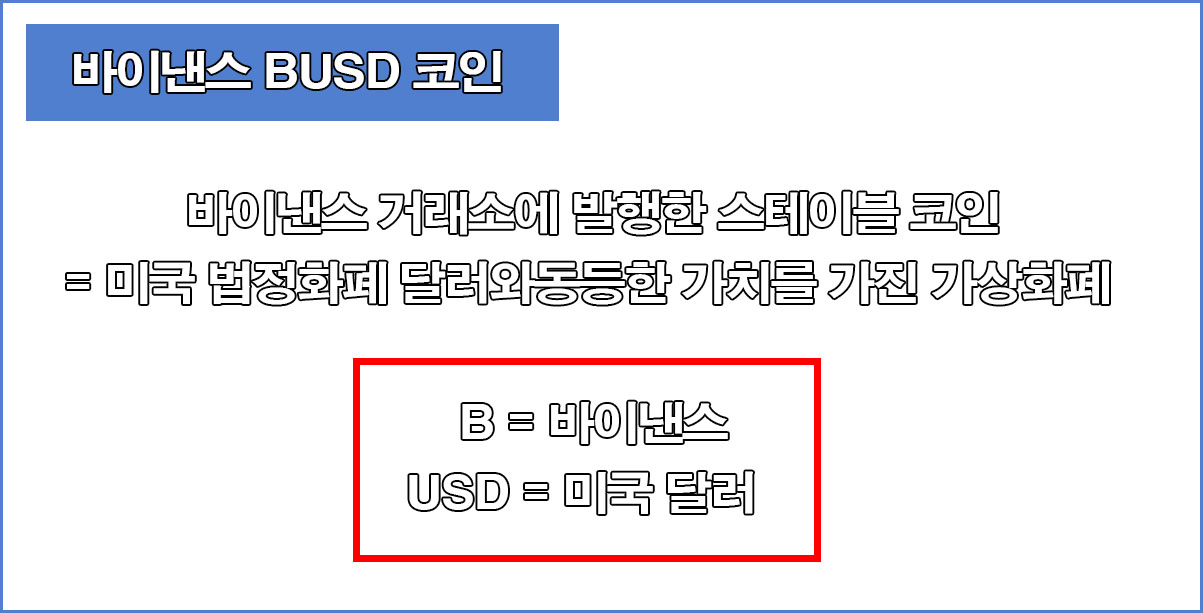 - BUSD = 바이낸스에서 발행한 미국 달러 스테이블 코인