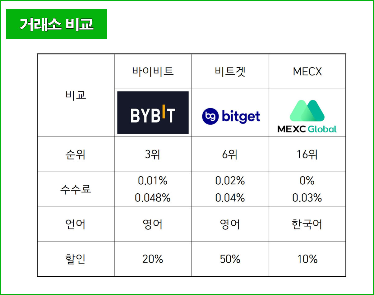바이비트 / 비트겟 / 멕스씨 비교표는 위를 참고