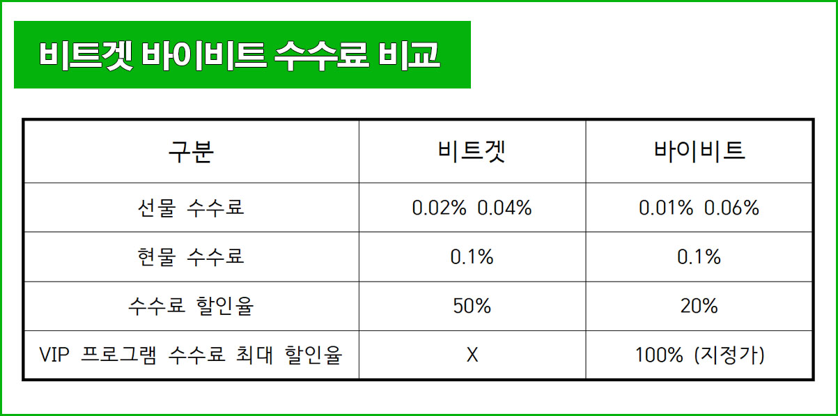 비트겟vs바이비트 수수료 비교