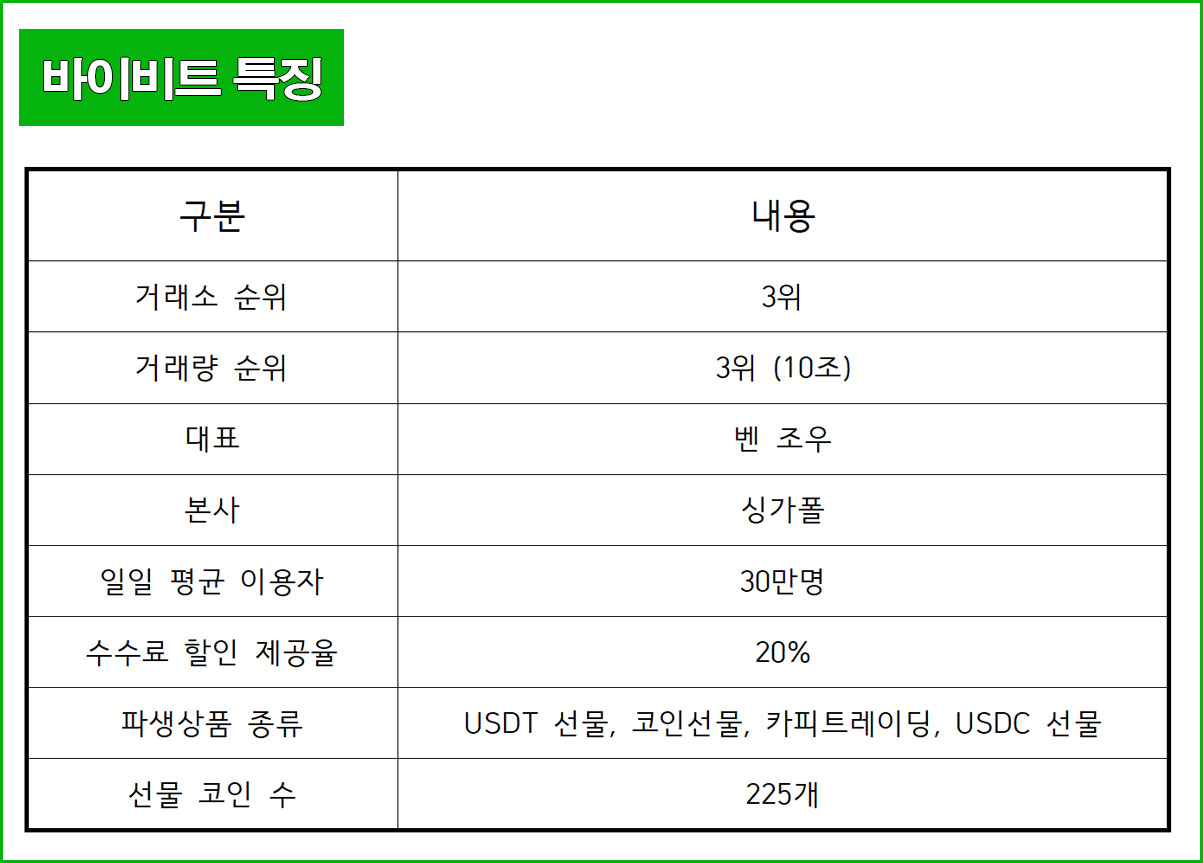 먼저 바이비트 거래소의 특징을 살펴보면,