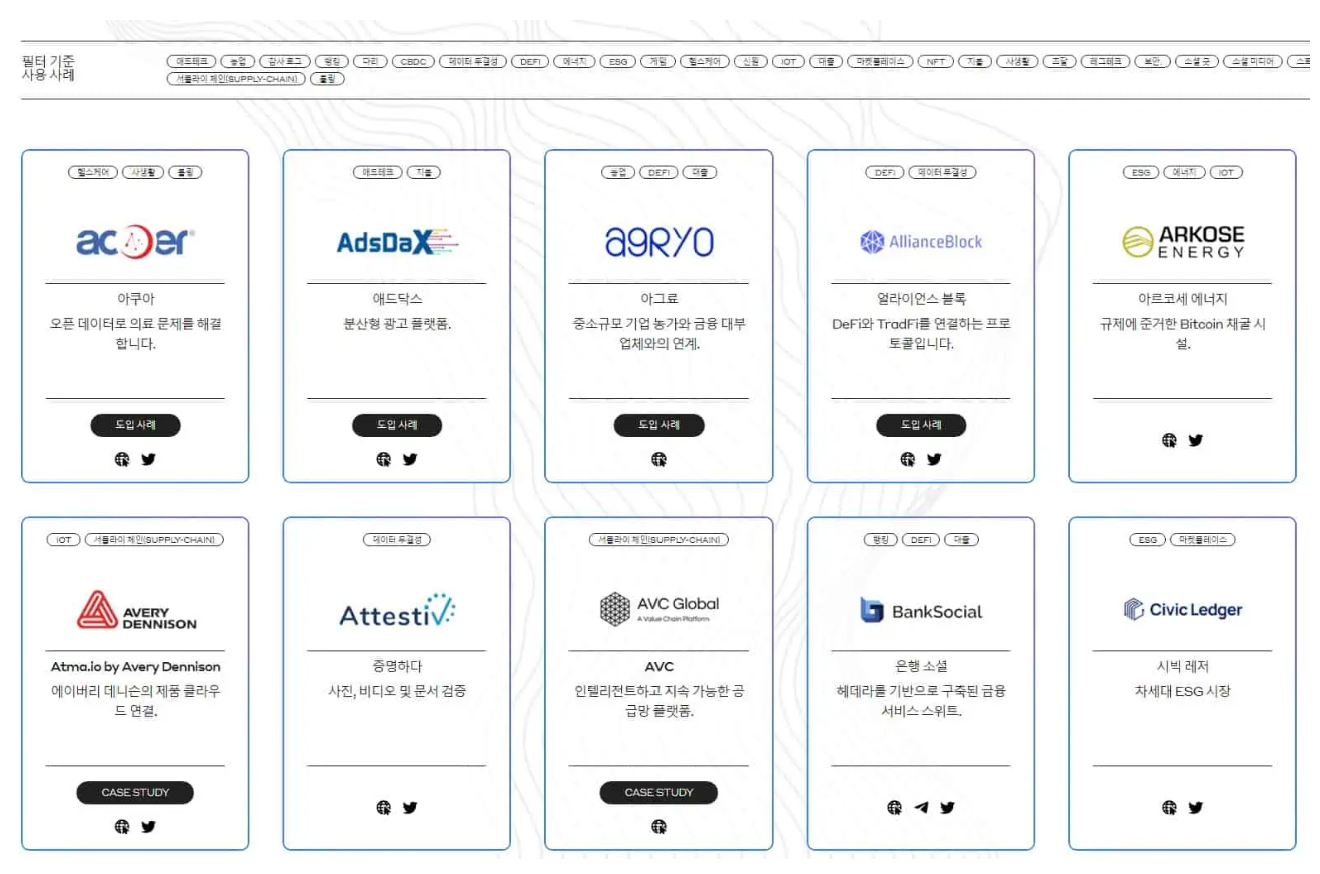 웹3 생태계와 마찬가지로 엔터프라이즈급의 기업들이 헤데라 어플리케이션에 참여한 목록들이다. 500곳 이상의 큰 기업들이 참여하였고 헤데라에서 제공하는 자산 토큰화, 허가된 블록체인, 신원인증 등 다양한 서비스를 이용할 수 있다.