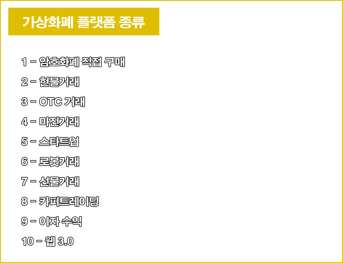 - 현물거래 : 가장 일반적인 현물거래를 제공