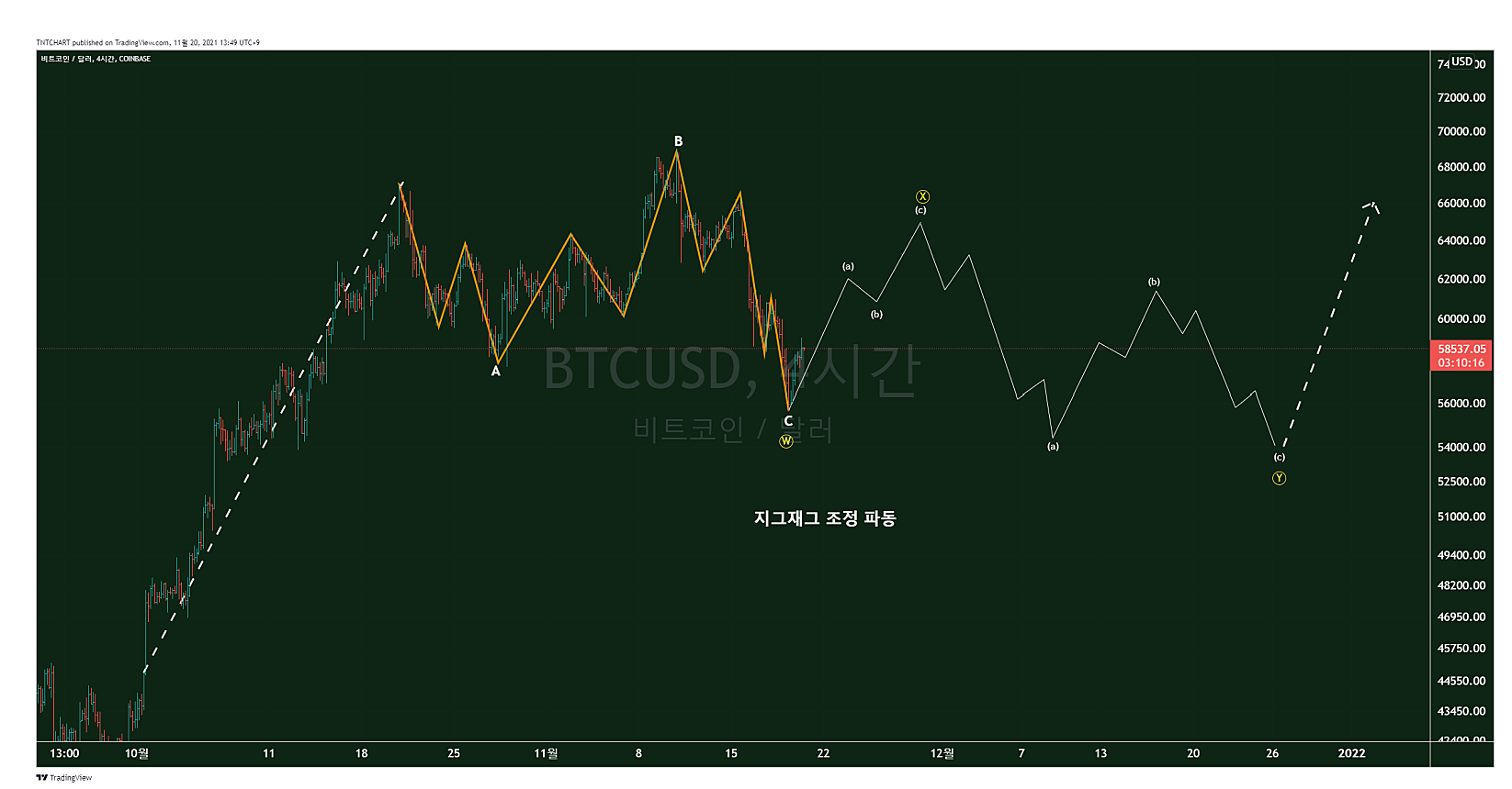 세번째는 지그재그 형태의 조정 파동이다.