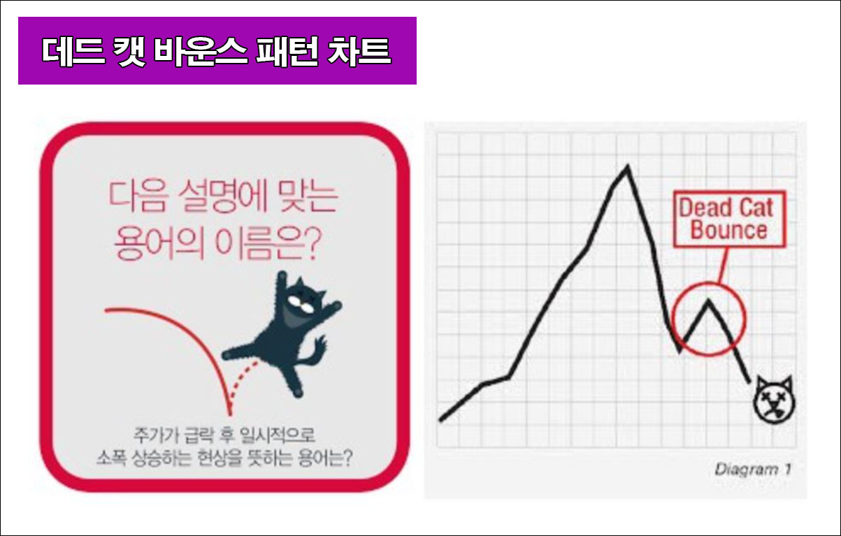 특정 자산군의 가격이 하락 추세에 있는 와중에 단기적인 반등이 발생할 때 표현한다. 아무리 죽은 고양이도 떨어지면 땅에서 튕길 수 있다는 말에서 비유된 패턴이다.