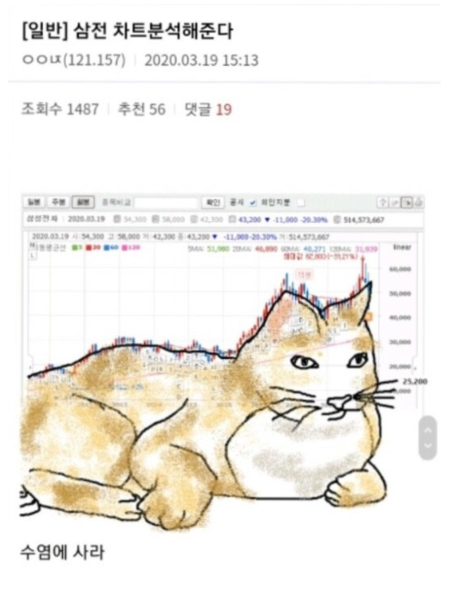 고양이가 높은 곳에서 눈물을 흘리면서 떨어지고 있다가 number2에서 반등이 나왔고 그 다음부터는 계속 떨어지다가 잠깐 반등이 나오고 마지막에도 떨어지다가 상승추세가 나왔다.
