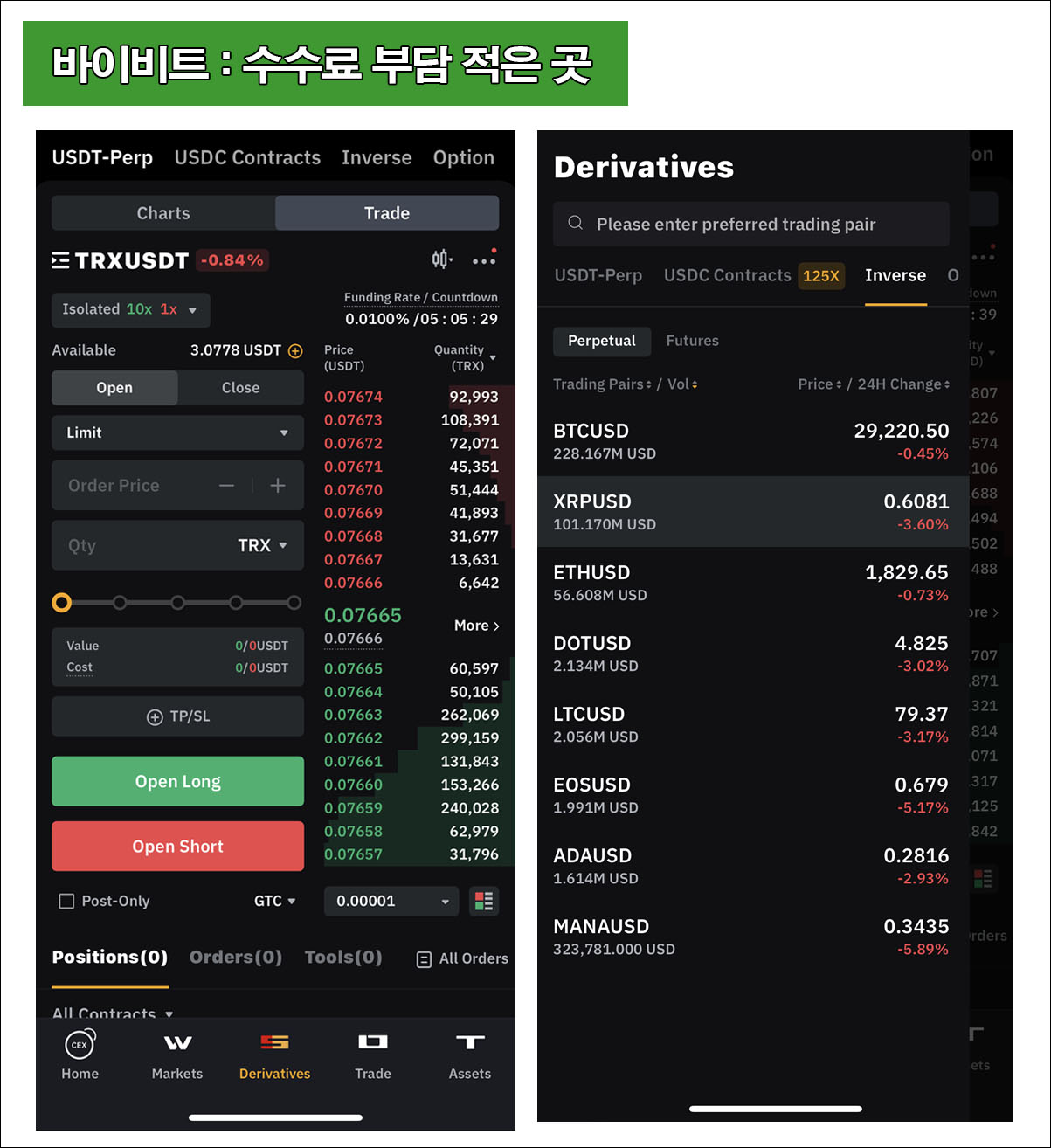 바이비트를 추천한 이유는 지정가 수수료가 전 세계 거래소 중 가장 저렴하기 때문이다.