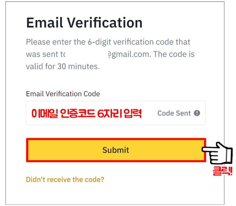 입력한 이메일로 인증코드가 발송되었다. 메일함을 확인 후 이메일 인증코드 6자리를 입력한다.