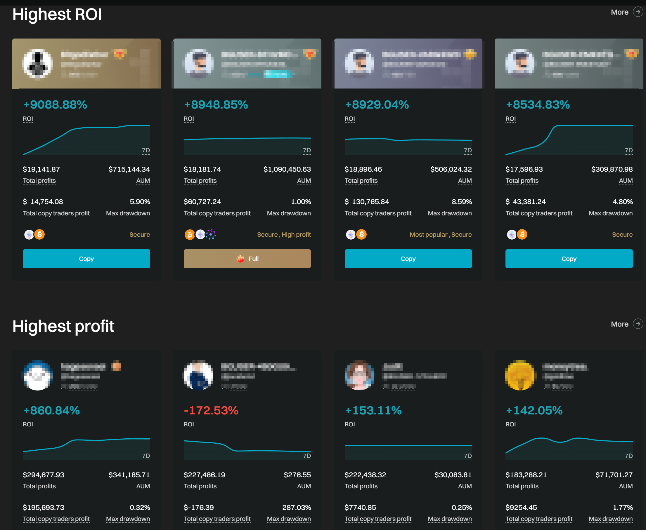 수익률만 높은 트레이더는 걸러야하며 또한 무리한 거래를 진행하는 트레이더도 걸러내야한다. 당장의 수익률만 보고 팔로우했을 경우 일어날 수 있는 일이기 때문에 위의 좋은 트레이더 고르는 방법을 참고하여 선택해야한다.