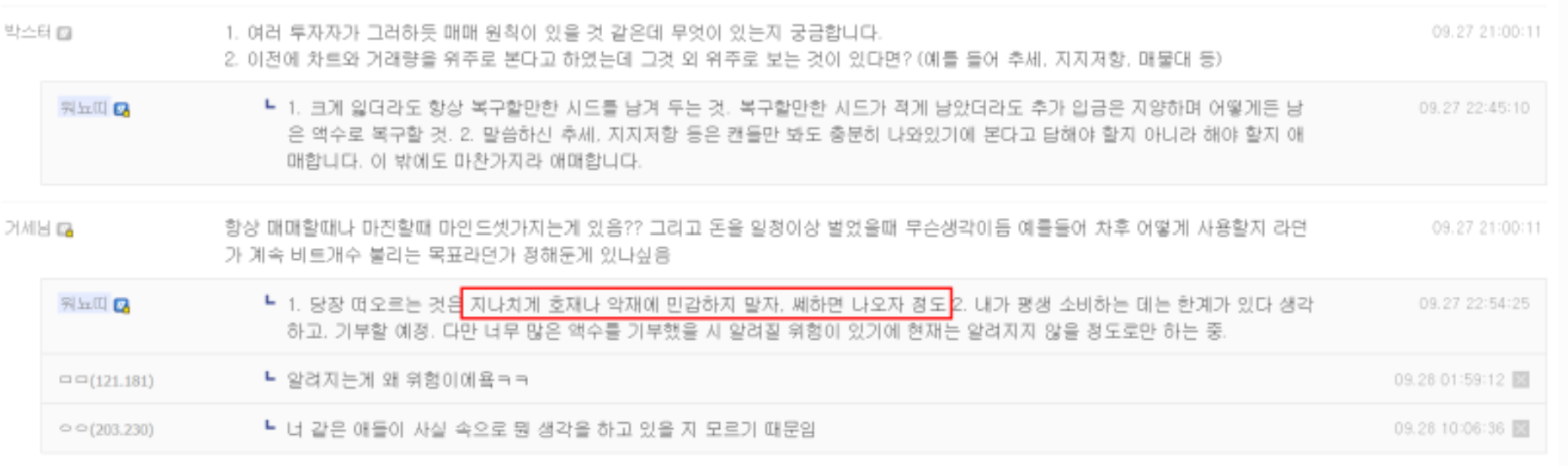 워뇨띠는 투자할 때 차트 외 부분을 10% 정도만 고려한다. 뉴스의 경우 시장 분위기가 좋다면 악재가 뜨더라도 효력이 없거나 악재해소라고 오르기 때문인데 반대로 시장 분위기가 좋지 않다면 어떤 호재가 뜨더라도 더 이상 뜰 호재가 없다고 내리곤 한다.