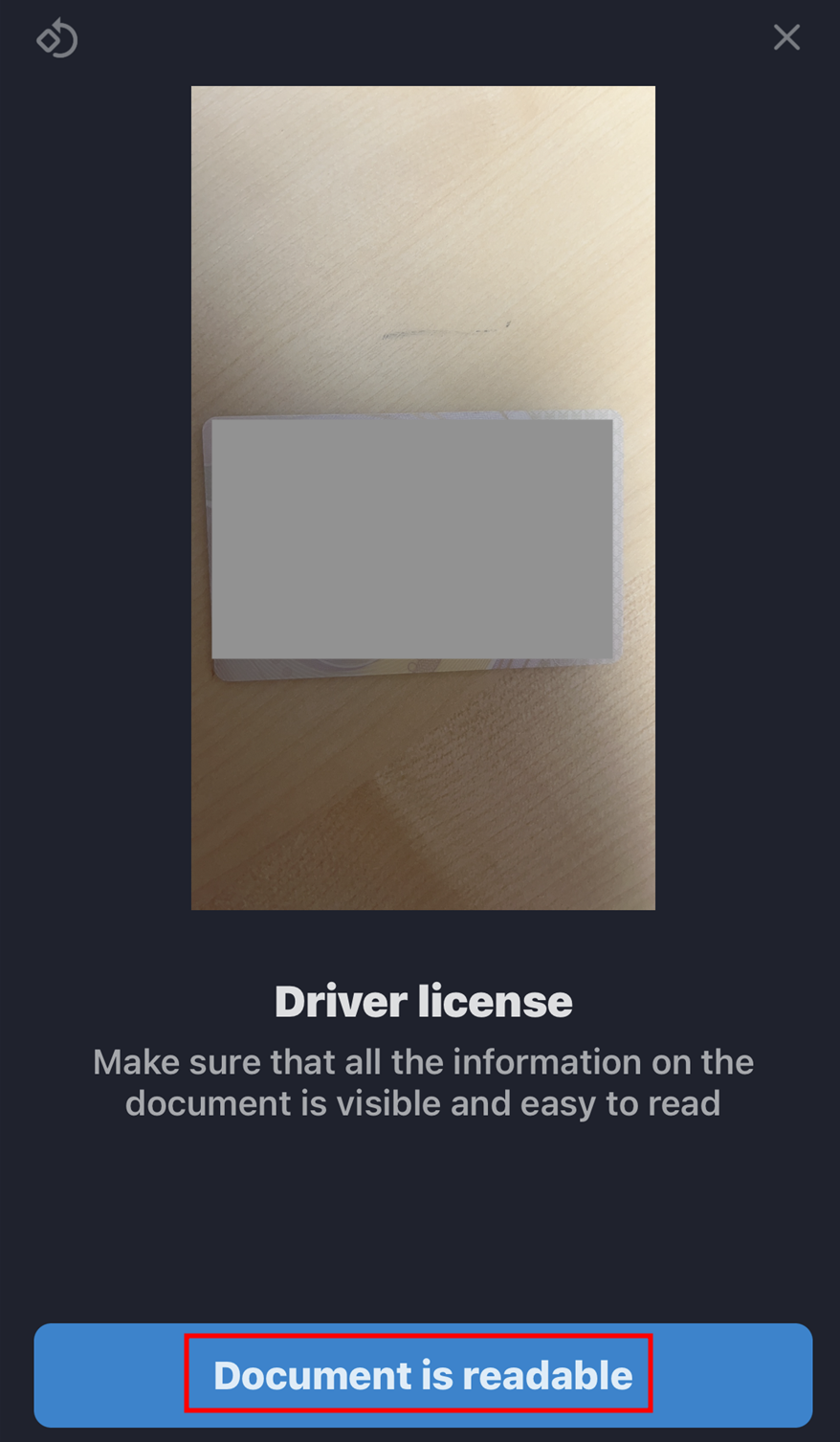 next를 클릭하면 카메라가 켜진다. 신분증을 촬영 후 파란색 버튼을 눌러준다.