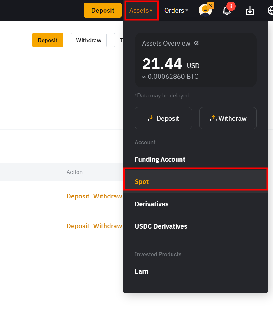 메인 화면 우측 상단의 Assets에서 Spot으로 들어간다.