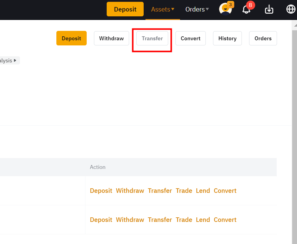 그 다음 우측 상단의 Deposit 옆 Transfer을 클릭한다.