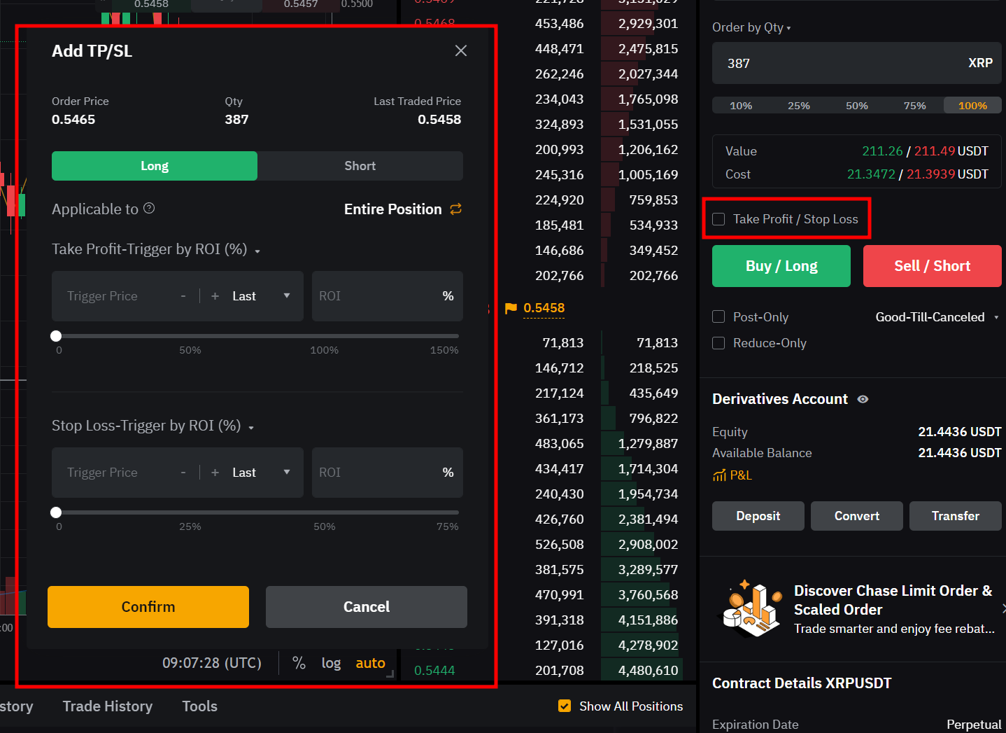 TP/SL은 손익절 설정으로 클릭하면 위와 같은 창이 나타난다.