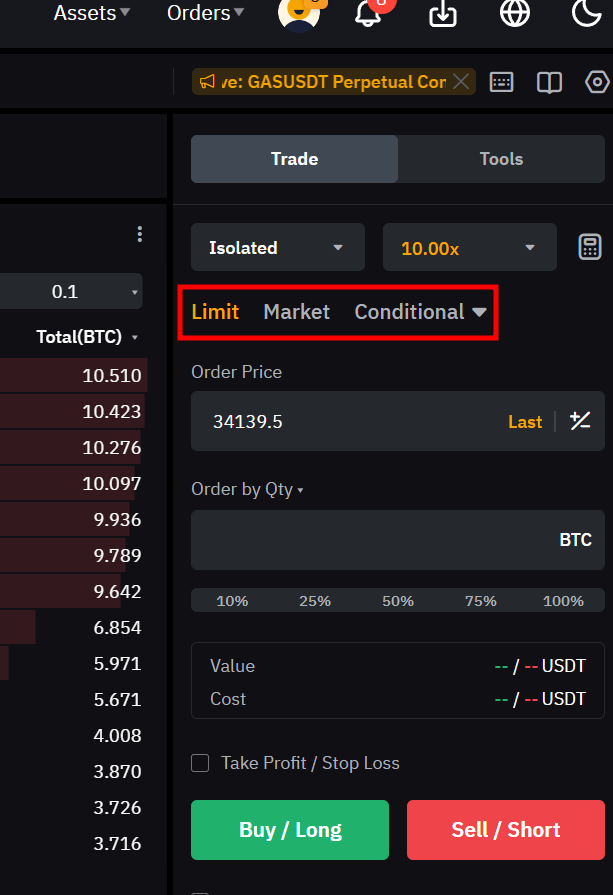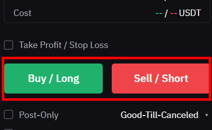 • 롱포지션은 Long을 클릭하여 설정하고 숏 포지션은 Short을 클릭하여 설정한다.