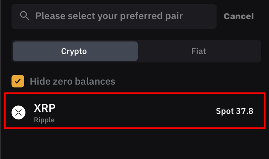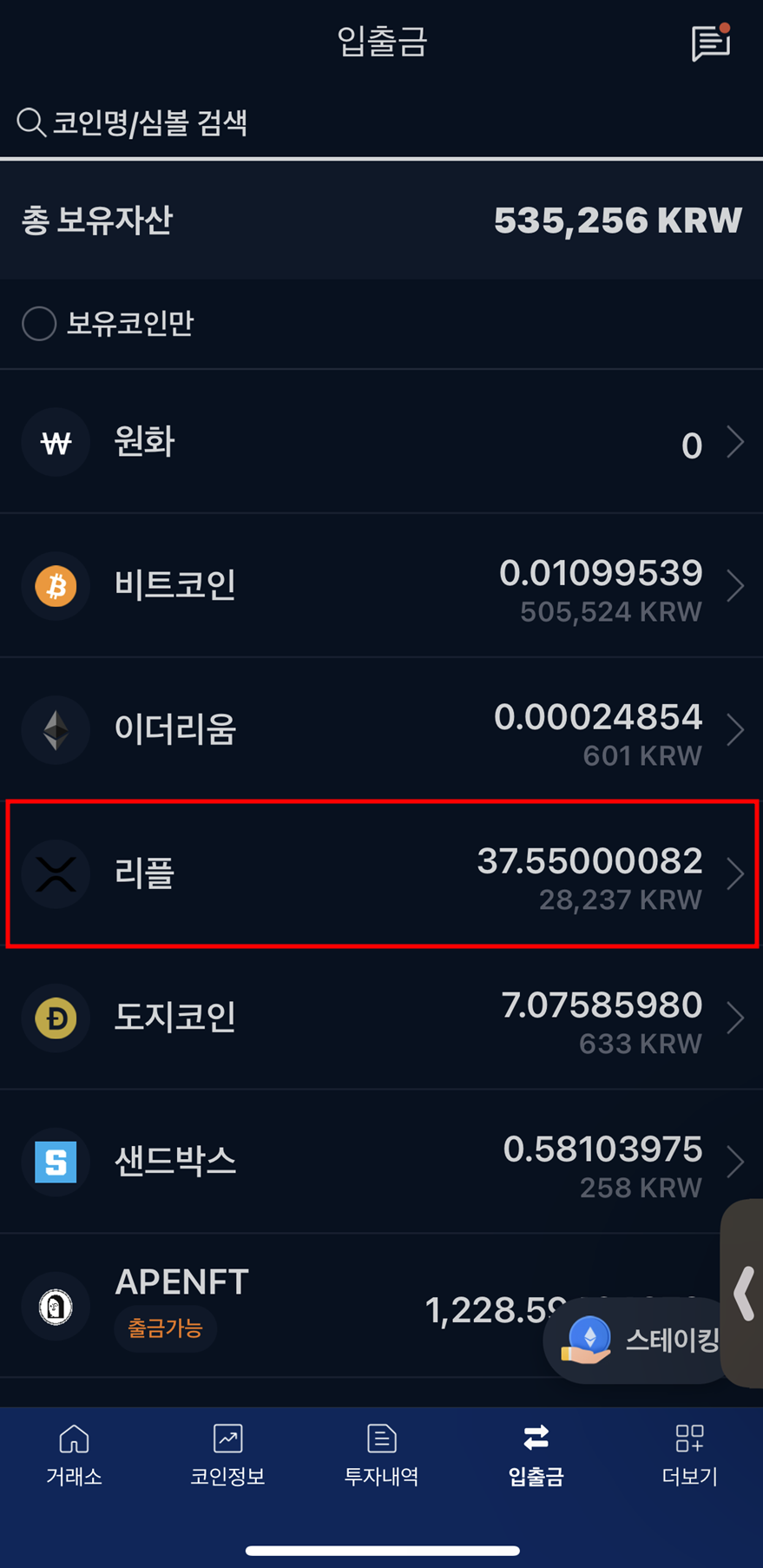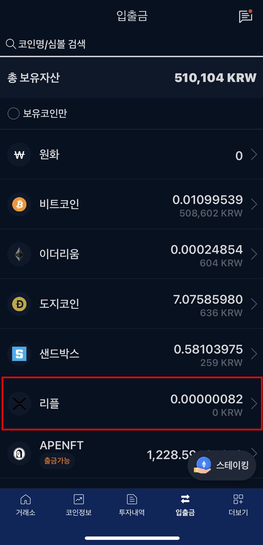 3. 출금할 코인인 리플 XRP를 선택한다.