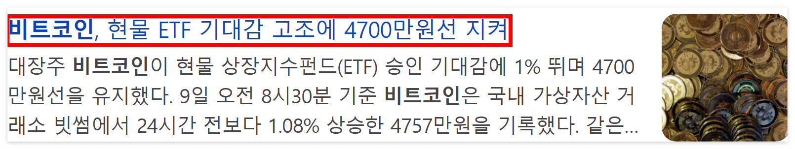 비트코인이 1.08% 상승한 4757만원이다. 현물상장지수펀드(ETF)승인 기대감에 상승세를 보이는 것이다. 암호화페의 대장주인 비트코인이 소폭 상승하며 장기적으로 우상향할 것이라는 전문가 분석도 집중해볼 필요가 있다.