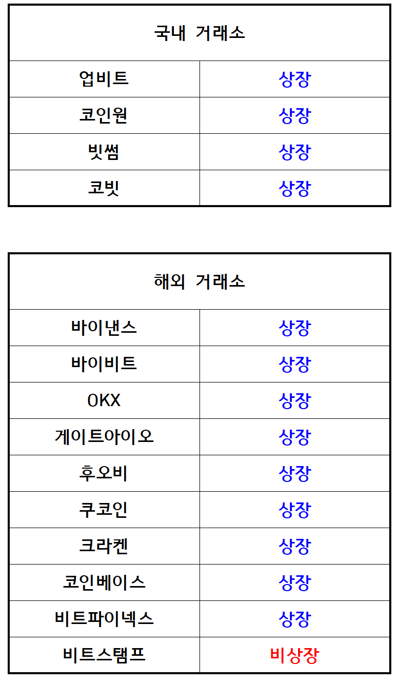 상장거래소 목록은 위와 같다.