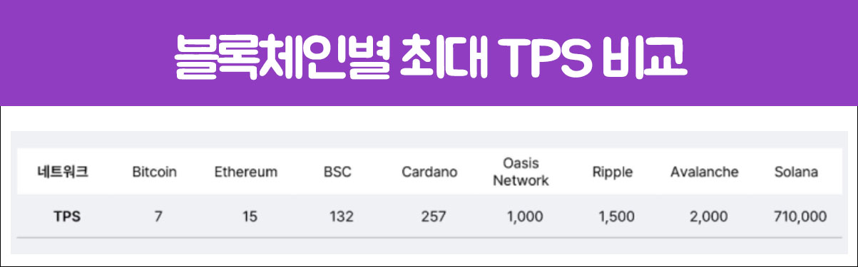 솔라나 코인은 초당 거래 횟수가 최대 710,000으로 타 블록체인과 비교 했을 때 압도적으로 우수하고 수수료는 건당 약 0.000005 달러로 저렴한편이다.
