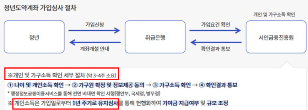 가입신청을 하고 심사를 거쳐 결과 발표까지 약 3-4주가 소요된다. 11월에 신처을 하면 확인결과 통보를 받고 12월에 청년도약계좌 개설을 진행할 수 있다.