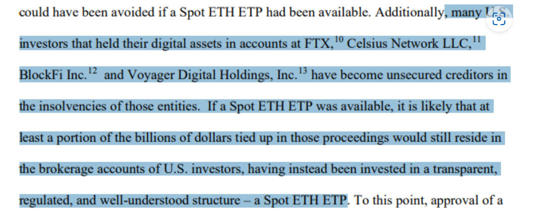 피텔리티는 신청서에서 당사의 현물 상장지수펀드가 투자자를 보호하기 위해 설계됐다고 밝혔다. 규제 기관이 허용한 적법한 현물 상장지수펀드가 있었다면 FTX거래소 파산 사태 등에 묶은 수십억 달러의 시장 참여자 자산을 보호할 수 있을것 이라는 입장이다.