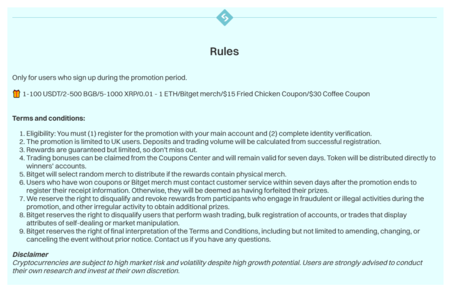 지금까지 비트겟 신규 가입자 이벤트 미스터리 박스에 대해 알아보았다. 본 게시글은 정보 공유의 목적으로 작성되었으며 투자 권장의 글이 아니며 모든 투자에 대한 책임은 투자자 본인에게 있습니다.