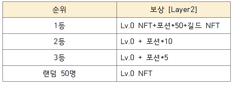• 보상 : NFT 및 포션 [아래 표 참고]