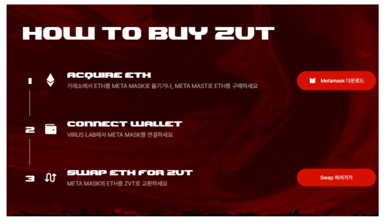 ZVT구매방법은 민팅에 참여할 수 있게되면 구매를 위한 ZVT구매가 필요하며 ZVT는 이더리움 ERC-20기반으로 만들어졌기 때문에 이더리움을 스왑하여 구매할 수 있다.