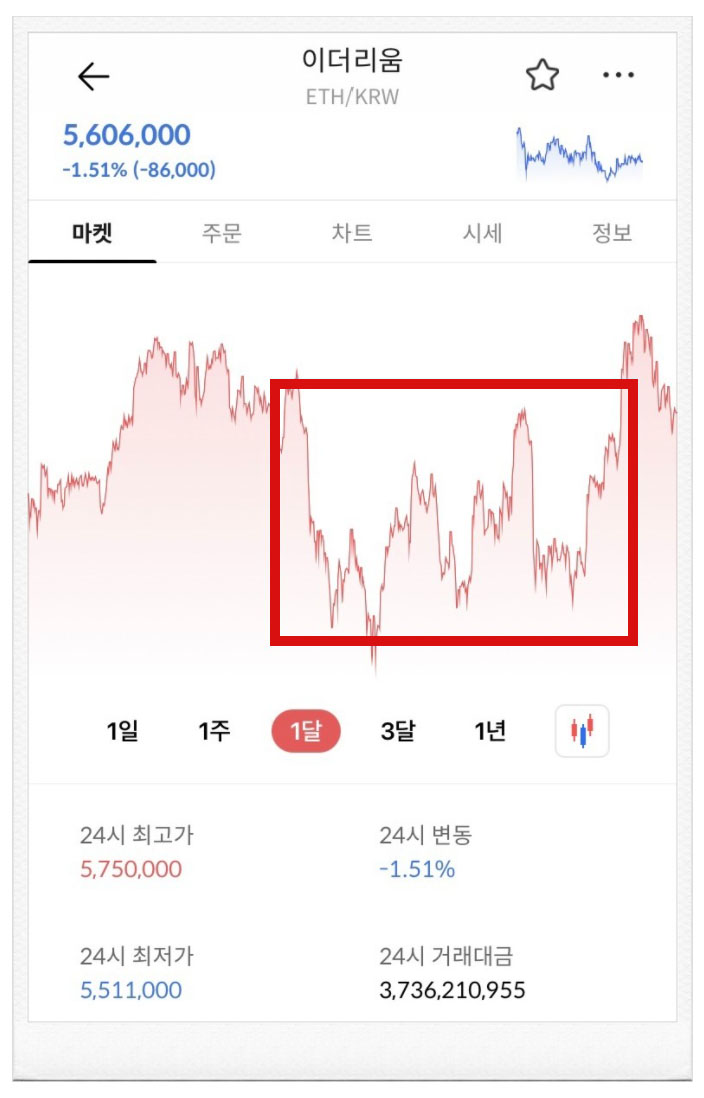 현재 가상화폐 시장에서 대다수의 코인들이 박스권에 갇혀 있는 상태고 오미트론 이슈가 다시 유동성에 변화를 줄 수 있다는 우려가 대두되고 있다. 이러한 부정적인 이슈들은 암호화폐에 악재로 작용할 수 있으나 이더리움 시세는 나홀로 불장을 만들면서 업비트나 빗썸에서 연사적인 신고가인 590만원을 찍었다.