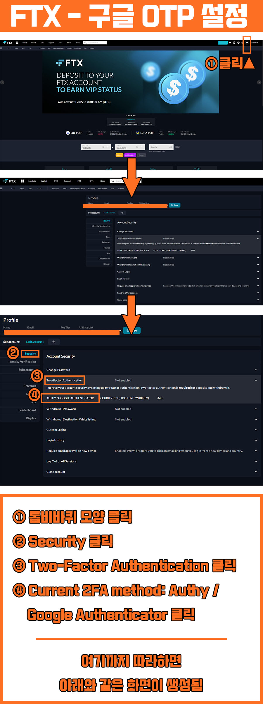 FTX 구글OTP 설정 방법